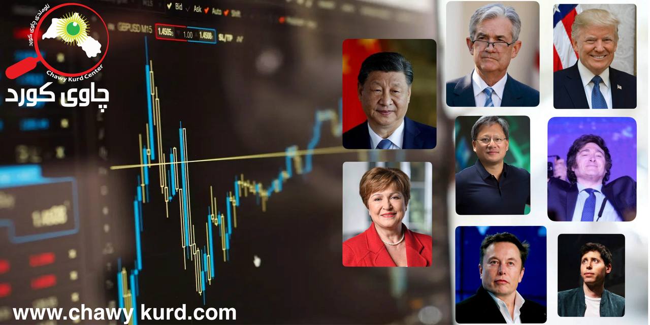 ساڵی 2025 شاهیدی وەرچەرخانێکی ئابووری بههێز بوو، کە تێیدا گرژییە بازرگانییەکان، گۆڕانکاری لە سیاسەتە نەختینەییەکان، گەشەی خێرای وەبەرهێنان لە بواری زیرەکی دەستکرد، و چاکسازی بنەڕەتی لە هەندێک لە ئابوورییە تازە پێگەیشتووەکاندا یەکتریان بڕی و نەخشەی ئابووری جیهانیان سەرلەنوێ کێشایەوە. لەچەقی ئەم دیمەنەدا، کۆمەڵێک کەسایەتی کاریگەر لە بڕیارە سیاسی و نەختینەییەکان و سەرکردەکانی تەکنەلۆژیا دەرکەوتن، کە بڕیارەکانیان ڕۆڵی ڕاستەوخۆیان هەبوو لە جوڵاندنی بازاڕەکان و ئاراستەکردنی بازرگانی و لێشاوی وەبەرهێنان؛ لە هەڵکشانی باجە گومرگییەکان و بەڕێوەبردنی ڕێژەی سوودی ئەمریکییەوە، تا دەگاتە پێشبڕکێی چیپەکان و زیرەکی دەستکرد. ئەم ڕاپۆرتە چاودێری ئەوە دەکات کە چۆن ئەم گۆڕانکارییانە ڕەنگدانەوەیان لەسەر بازاڕە جیهانییەکان و ئابووری دیجیتاڵی هەبووە، و تیشک دەخاتە سەر دیارترین ئەو دەموچاوانەی کە ئاراستەکانی ئابووری جیهانیان لە ساڵێکی ناوازەدا دروست کرد. ساڵی 2025 تێکەڵەیەکی دەگمەن بوو لە گرژییە بازرگانییەکان و گۆڕانکارییە نەختینەییەکان و زیادبوونی وەبەرهێنان لە زیرەکی دەستکرددا. لە ناو جەرگەی ئەم گۆڕانکارییانەدا، چەند کەسایەتییەک دەرکەوتن کە شوێنپەنجەیان بەسەر ڕێڕەوی ئابووری جیهانەوە دیار بوو، لە کۆشکی سپی و وۆڵ ستریتەوە تا پەکین و بۆینس ئایریس و بازاڕەکانی نەوت.