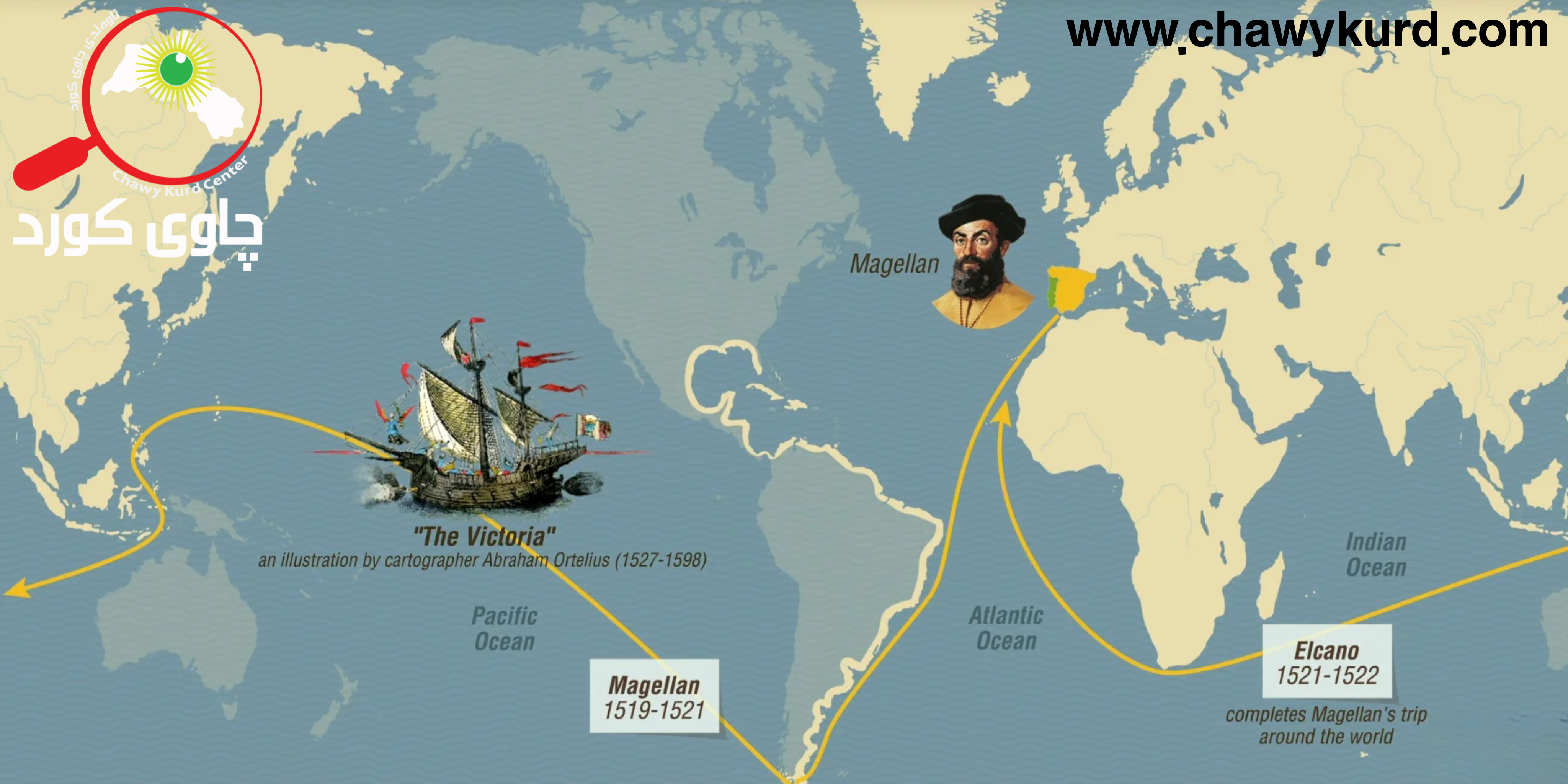 1. ڕێڕەوی گەشتەکەی ماجەلان (١٥١٩-١٥٢٢)
